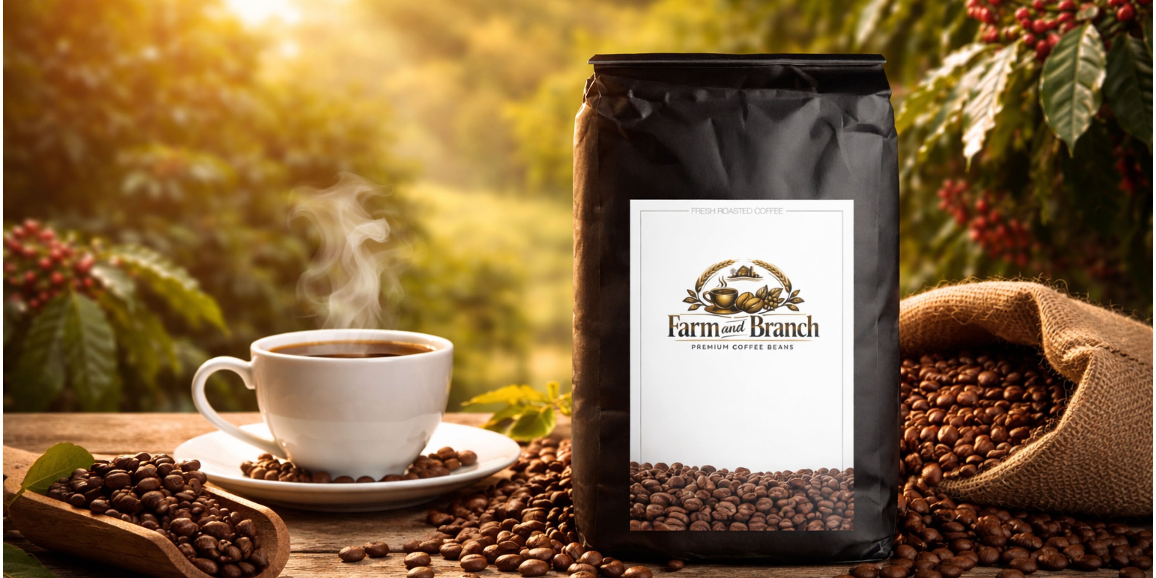 At Farm and Branch ~ Premium coffee beans, coffee begins where it matters most — at the source. We believe exceptional coffee starts with carefully grown beans, cultivated with respect for the land and the communities that nurture it.